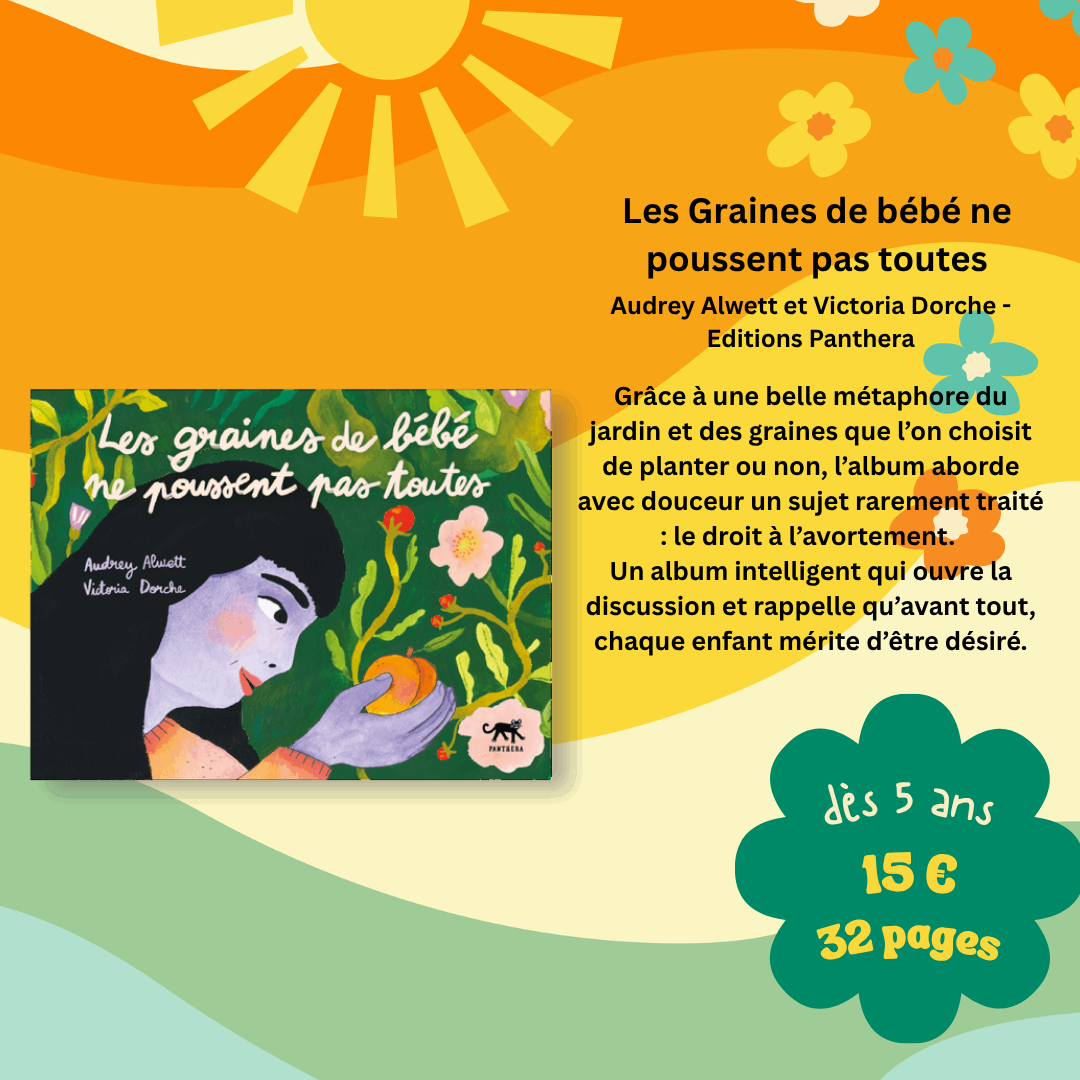 Les Graines de bébé ne poussent pas toutes de Audrey Alwett et Victoria Dorche. Paru le 25 avril 2025 aux éditions Panthera, 32 pages - 17 €