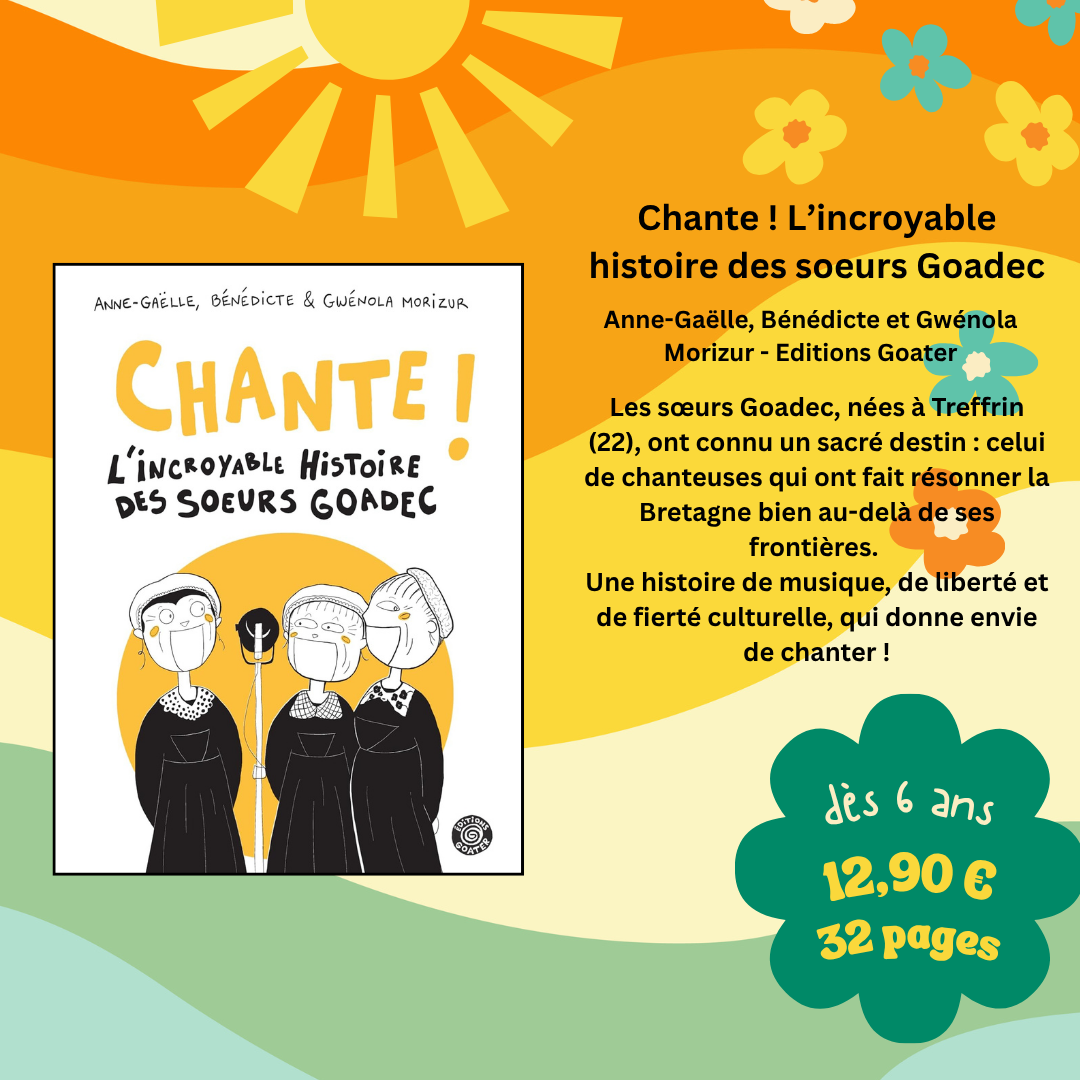 Chante ! L'incroyable histoire des soeurs Goadec de Anne-Gaëlle, Bénédicte et Gwénola Morizur. Paru le 20 février 2026 aux éditions Goater, 32 pages - 12.50 €